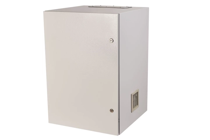 SZAFA WISZĄCA 19" 15Ux600x600 MM IP54 ŚCIANY BOCZNE PEŁNE, DRZWI PEŁNE, WEWNĘTRZNA, RAL 7035