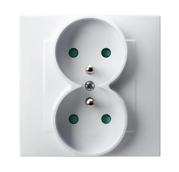 Gniazdo podwójne z uziemieniem z przesłonami torów prądowych, kompletne z ramką - BIAŁY o numerze katalogowym   GP-2ZZP/00 w kategorii Gniazda instalacyjne>Gniazda podtynkowe. Produkt wyprodukowany przez markę OSPEL, seria SZAFIR.