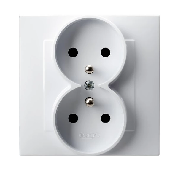 Gniazdo podwójne z uziemieniem kompletne z ramką - BIAŁY o numerze katalogowym   GP-2ZZ/00 w kategorii Gniazda instalacyjne>Gniazda podtynkowe. Produkt wyprodukowany przez markę OSPEL, seria SZAFIR.