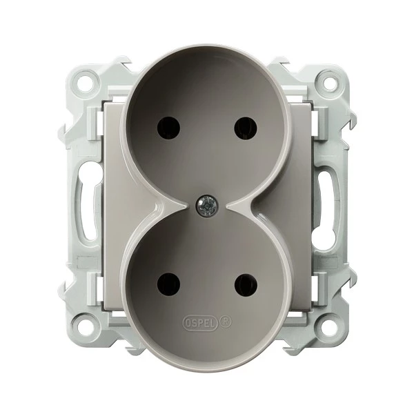 SZAFIR MODUŁ SREBRNY GNIAZDO 2X Z/U ZACISKI ŚRUBOWE 16A 250V