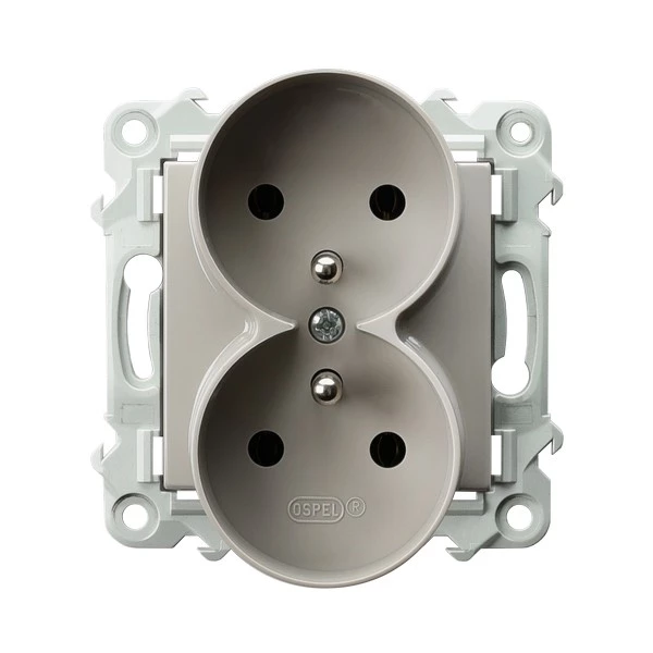 SZAFIR MODUŁ SREBRNY GNIAZDO 2X Z/U ZACISKI ŚRUBOWE 16A 250V