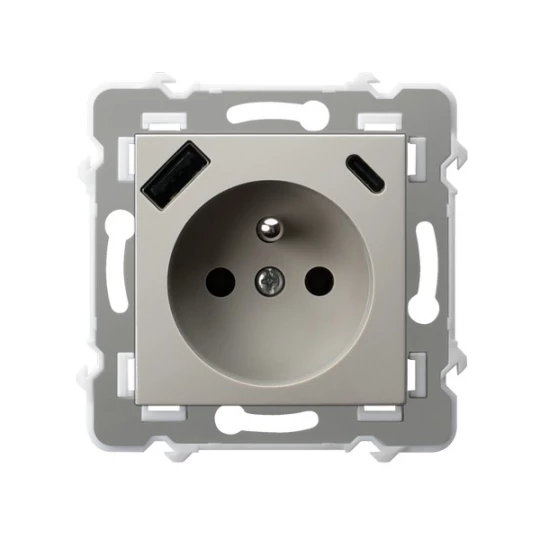 SZAFIR Gniazdo pojedyncze z uziemieniem z przesłonami torów prądowych z ładowarką, USB A+C kaszmirowy beż GP-1ZZPUSBAC/m/83