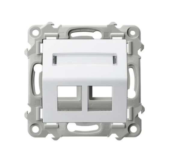 Obudowa gniazda podwójnego typu Keystone skośna - BIAŁY o numerze katalogowym   GPK-2ZS/P/00 w kategorii Łączniki i gniazda instalacyjne>Gniazda teleinformacyjne, multimedialne. Produkt wyprodukowany przez markę OSPEL, seria SZAFIR.