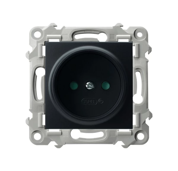 Gniazdo pojedyncze z przesłonami torów prądowych - CZARNY METALIK o numerze katalogowym   GP-1ZP/M/33 w kategorii Gniazda instalacyjne>Gniazda podtynkowe. Produkt wyprodukowany przez markę OSPEL, seria SZAFIR.