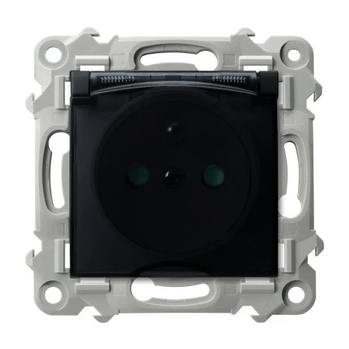 Simon 54 Gniazdo bryzgoszczelne z/u IP44 z klapką transparentną antracyt DGZ1BZ.01/48A