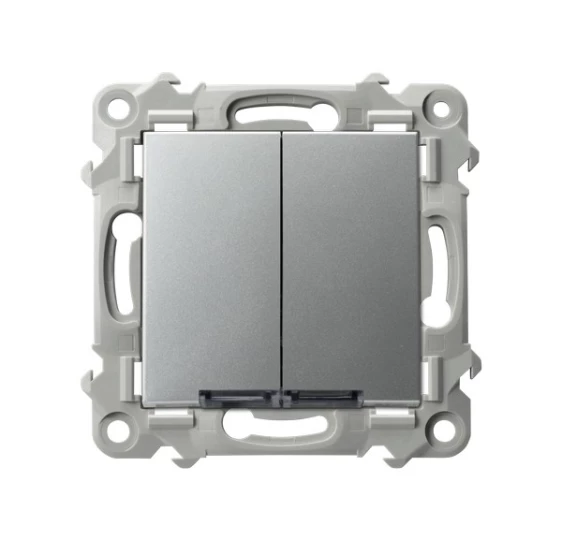 Łącznik dwugrupowy świecznikowy z podświetleniem niebieskim - SREBRO o numerze katalogowym   ŁP-2ZS/M/18 w kategorii Łączniki wielobiegunowe>Łączniki podtynkowe wielobiegunowe. Produkt wyprodukowany przez markę OSPEL, seria SZAFIR.