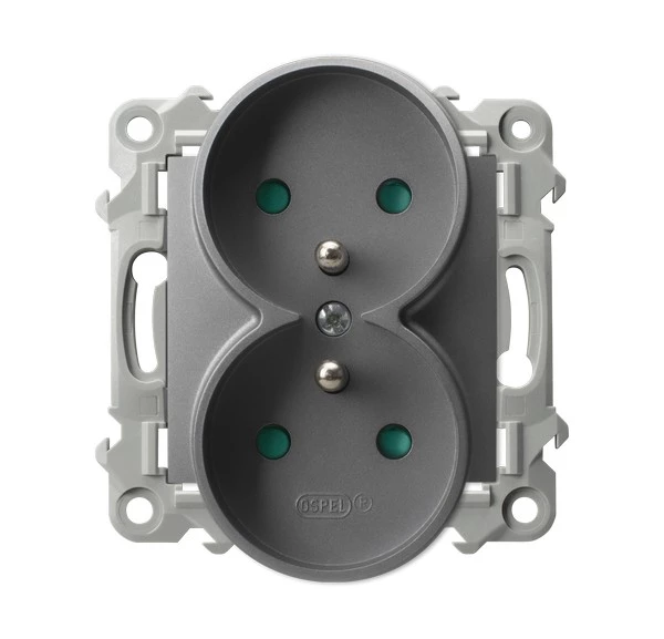 Gniazdo podwójne z uziemieniem z przesłonami torów prądowych, moduł bez ramki - SZARY MAT o numerze katalogowym   GP-2ZRZP/M/70 w kategorii Gniazda instalacyjne>Gniazda podtynkowe. Produkt wyprodukowany przez markę OSPEL, seria SZAFIR.