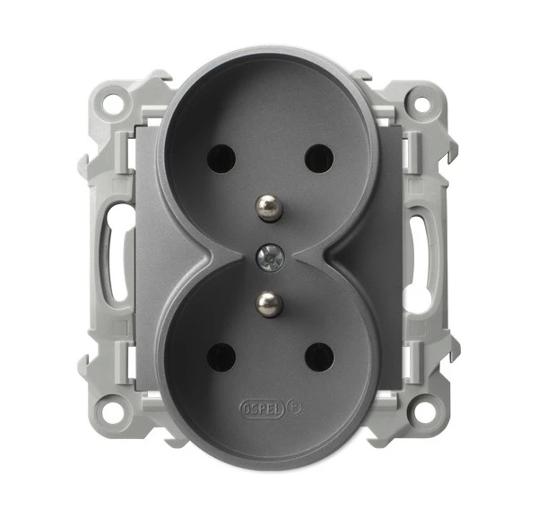 Gniazdo podwójne z uziemieniem moduł bez ramki - SZARY MAT o numerze katalogowym   GP-2ZRZ/M/70 w kategorii Gniazda instalacyjne>Gniazda podtynkowe. Produkt wyprodukowany przez markę OSPEL, seria SZAFIR.