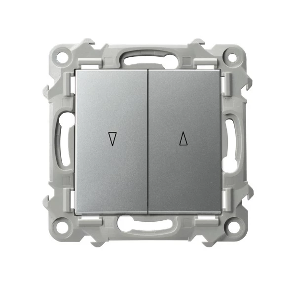 Łącznik żaluzjowy z blokadą mechaniczną - SREBRO o numerze katalogowym   ŁP-7ZB/M/18 w kategorii Łączniki i gniazda instalacyjne>Łączniki żaluzjowe. Produkt wyprodukowany przez markę OSPEL, seria SZAFIR.