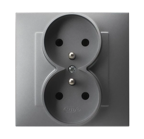 Gniazdo podwójne z uziemieniem kompletne z ramką - SZARY MAT o numerze katalogowym   GP-2ZZ/70 w kategorii Gniazda instalacyjne>Gniazda podtynkowe. Produkt wyprodukowany przez markę OSPEL, seria SZAFIR.