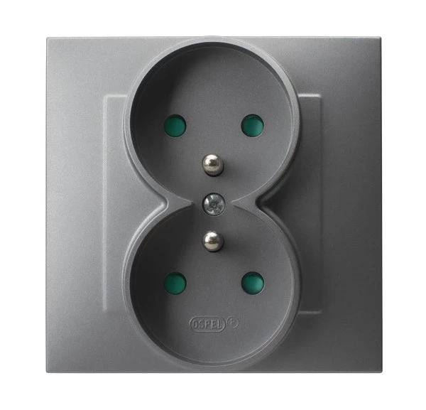 Gniazdo podwójne z uziemieniem z przesłonami torów prądowych, kompletne z ramką - SZARY MAT o numerze katalogowym   GP-2ZZP/70 w kategorii Gniazda instalacyjne>Gniazda podtynkowe. Produkt wyprodukowany przez markę OSPEL, seria SZAFIR.