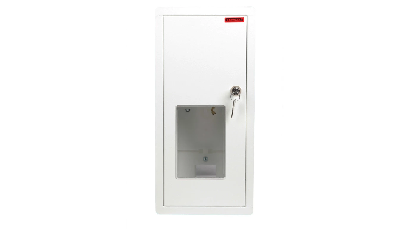 Rozdzielnica wnękowa RW-1-P z zamkiem i okienkiem, miejsce na 1 licznik 1F oraz 6 zabezpieczeń typu s. o numerze katalogowym RW-1-P Z/O w kategorii Metalowe podtynkowe, Rozdzielnice i obudowy. Produkt wyprodukowany przez markę KARWASZ, seria RW.
