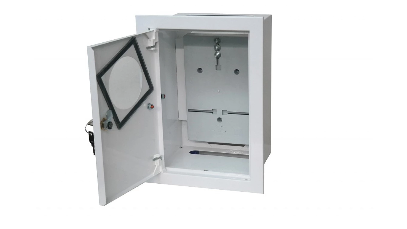 Szafka licznikowa podtynkowa metalowa 1x1F zamek okienko IP40 RAL 9003 A-RW18