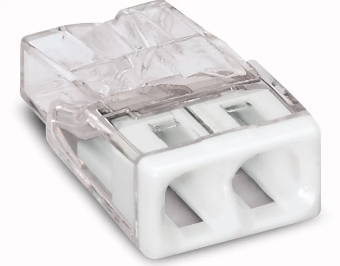 Złączka COMPACT do puszek instalacyjnych do przewodów jednodrutowych maksymalnie 2,5 mm 2-przewodowe kolor obudowy przezroczysty kolor pokrywy białatemperatura otoczenia maksymalnie 60 °C (T60) 2,50 mm transparentny o numerze katalogowym 2273-202 w kategorii Złączki wciskane, Złączki instalacyjne. Produkt wyprodukowany przez markę WAGO, seria 2273.