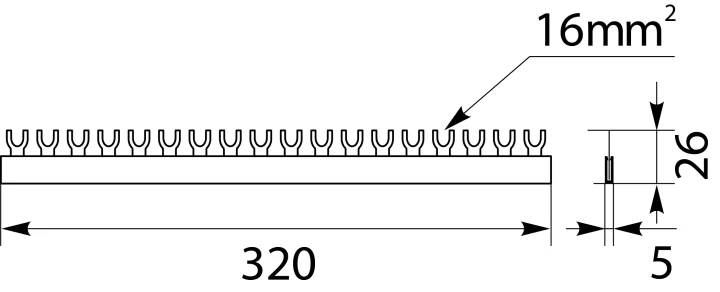 IZ16/1F/54/L SZYNA ŁĄCZENIOWA WIDEŁKOWA ZAGIĘTA 100A 1P 54M 16MM2 ETIBOX