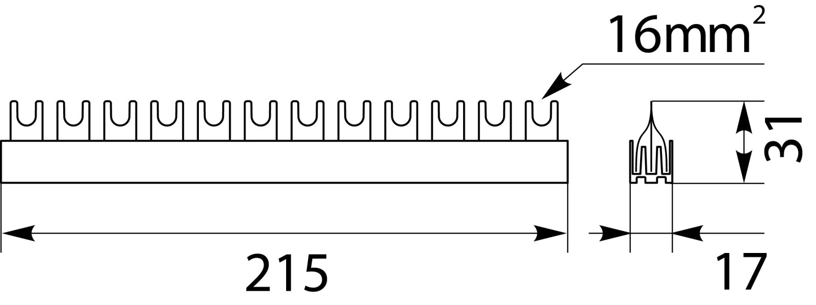 Szyna łączeniowa 3P 80A 16mm2 widełkowa (12 mod.) BI3/16x12 607047