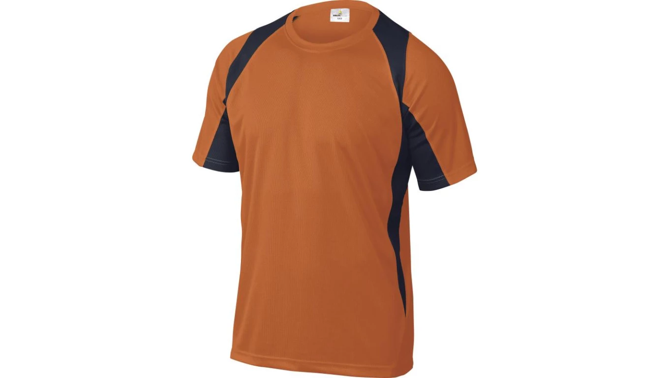 T-shirt dwukolorowy z poliestru (100%), 160 g/m2, szybkoschnący pomarańczowo-granatowy L o numerze katalogowym BALIOMGT w kategorii Odzież robocza - pozostałe, Odzież robocza. Produkt wyprodukowany przez markę DELTA PLUS, seria BALI.