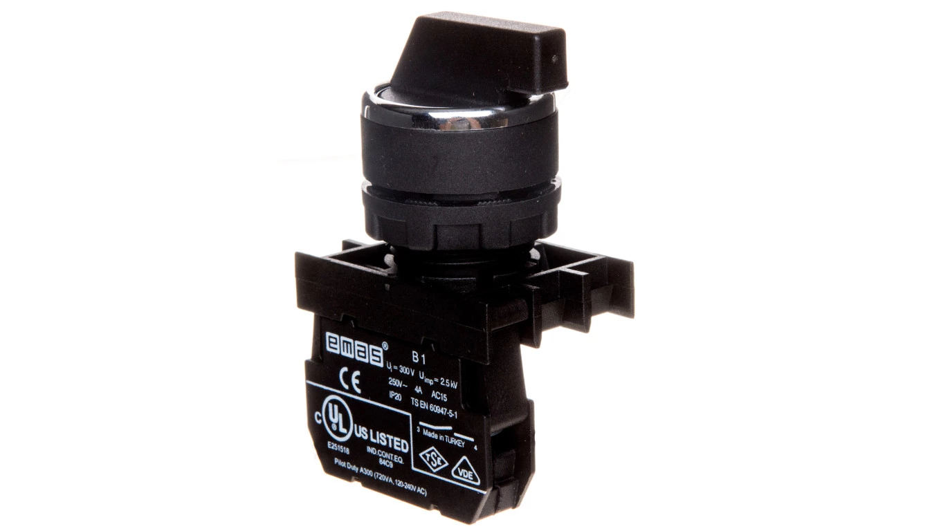 Przełącznik 3 połóżeniowy klucz 22mm czarny 2Z bez samopowrotu ST22-SAAA-20.