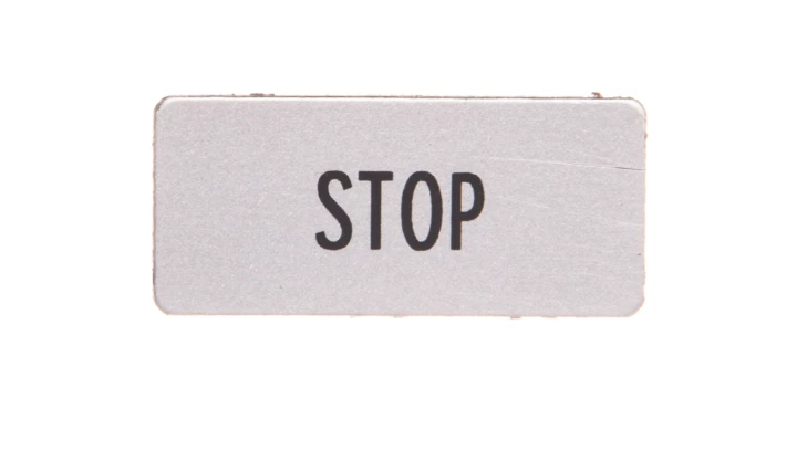 Tabliczka opisowa STOP 22x10mm srebrna prostokątna 110SQ25 038507 /20szt./