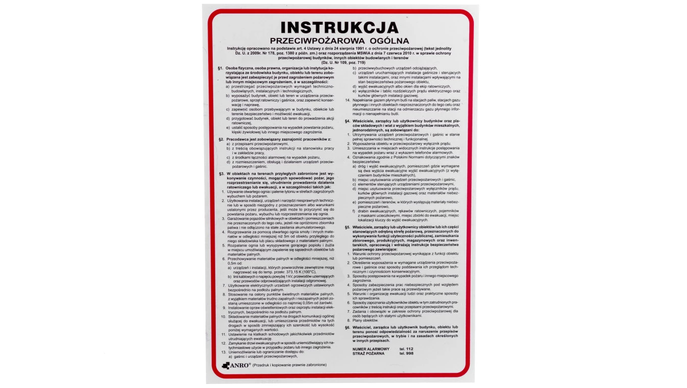 Tabliczka ostrzegawcza PCV /Instrukcja przeciwpożarowa ogólna/ IP02/P