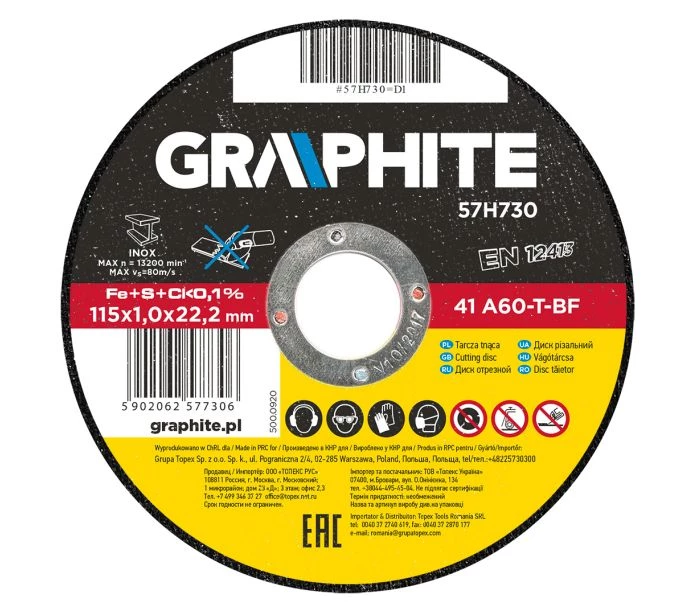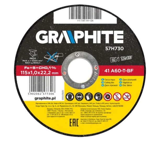 Tarcza tnąca do metalu 115 x 1.0 x 22.2 mm 41 A60-T-BF INOX 57H730