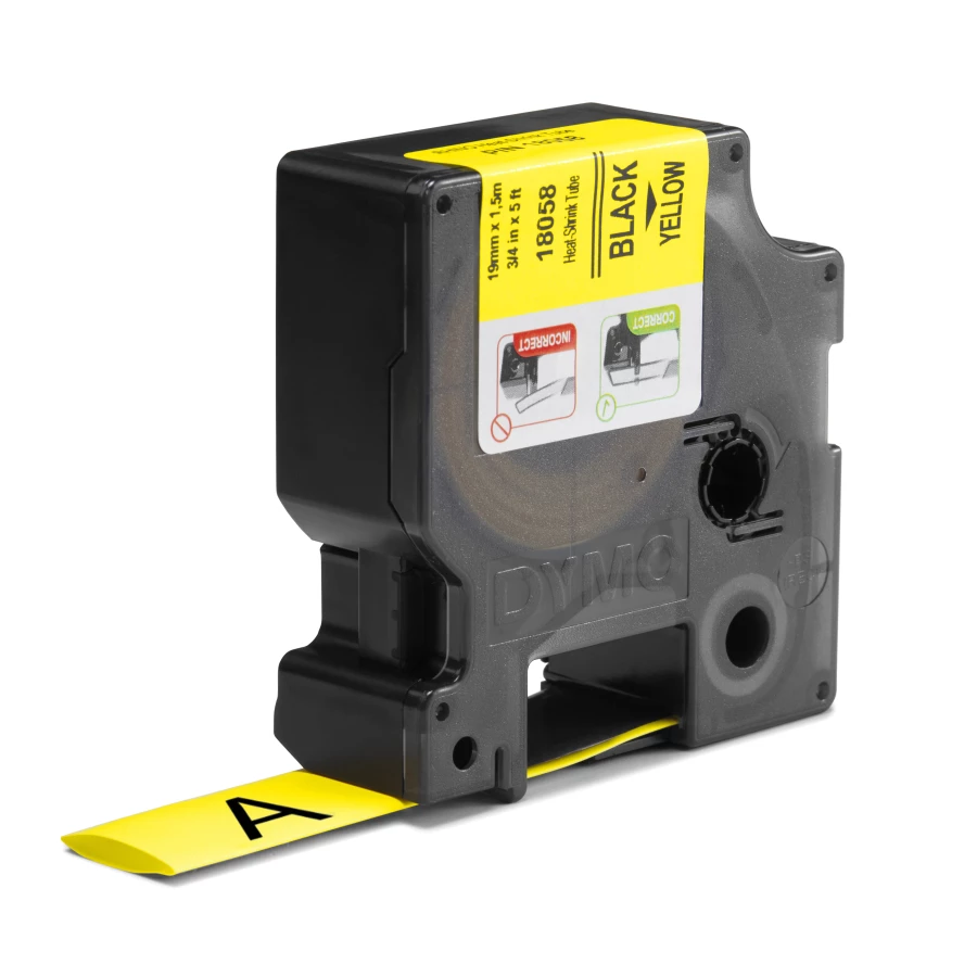 TAŚMA/ RURKA TERMOKURCZLIWA 19MM 1.5M CZARNY NADRUK / ŻÓŁTE TŁO FI MIN.4.64MM / MAX.8.70MM RHINO