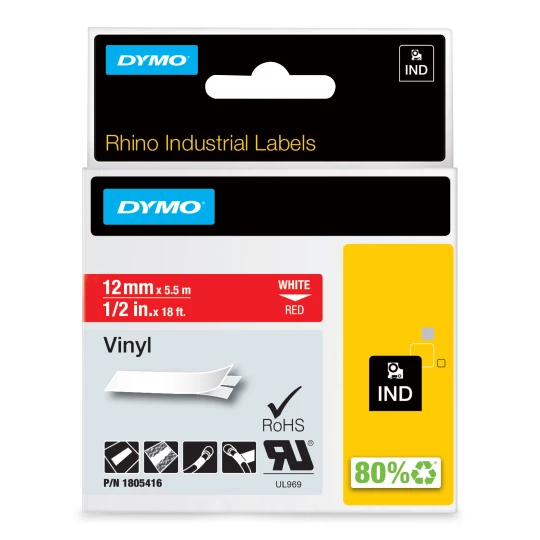 Taśma winylowa do drukarek 12mm x 5,5m biała na czerwonym 1805416
