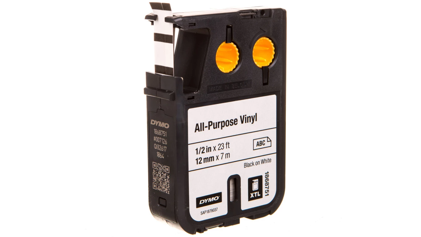 TAŚMA WINYLOWA TRWAŁA 12MM 7M CZARNY NADRUK / BIAŁE TŁO XTL