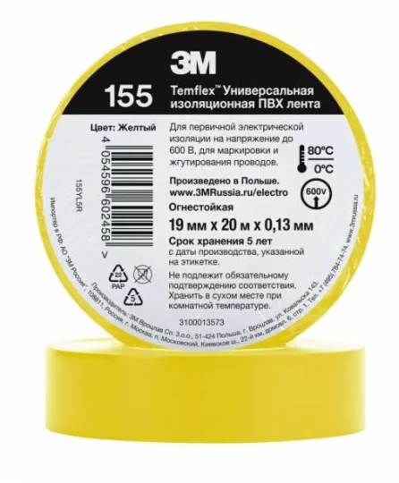TEMFLEX 155 19X20 TAŚMA IZOLACYJNA 19MM 20M PVC ŻO