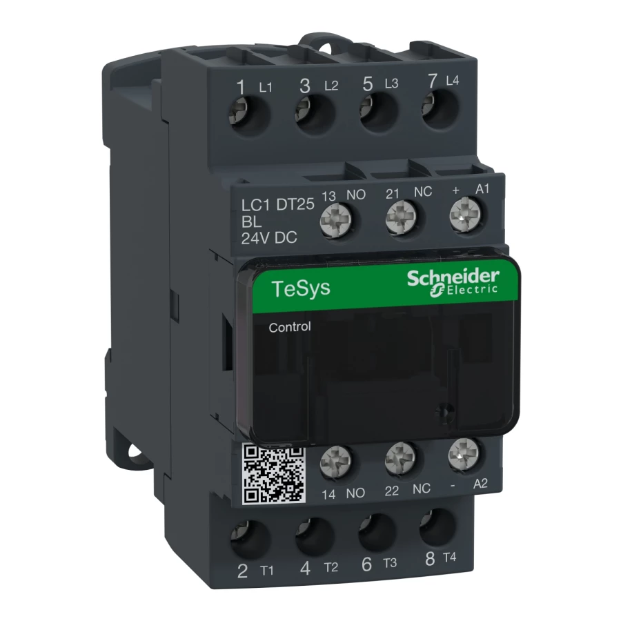 Stycznik mocy TeSys D AC1 25A 4P 1NO 1NC cewka 24VDC niski pobór o numerze katalogowym   LC1DT25BL w kategorii Styczniki>Styczniki typ DC. Produkt wyprodukowany przez markę SCHNEIDER ELECTRIC.