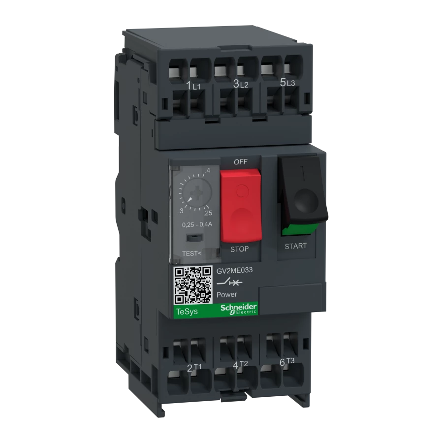TeSys Deca Wyłącznik silnikowy z przyciskami I=0,25..0,4A GV2ME033