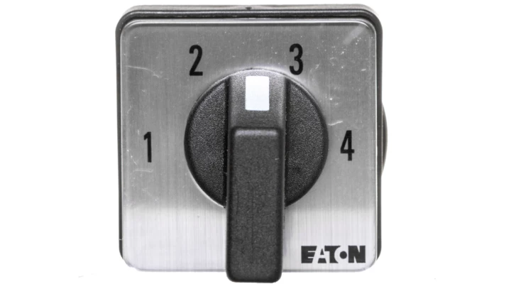 TM-2-8231/E 10A 1-2-3-4 1P ŁĄCZNIK KRZYWKOWY 10A 1P B/O 3KW IP65 NAPĘD CZARNY