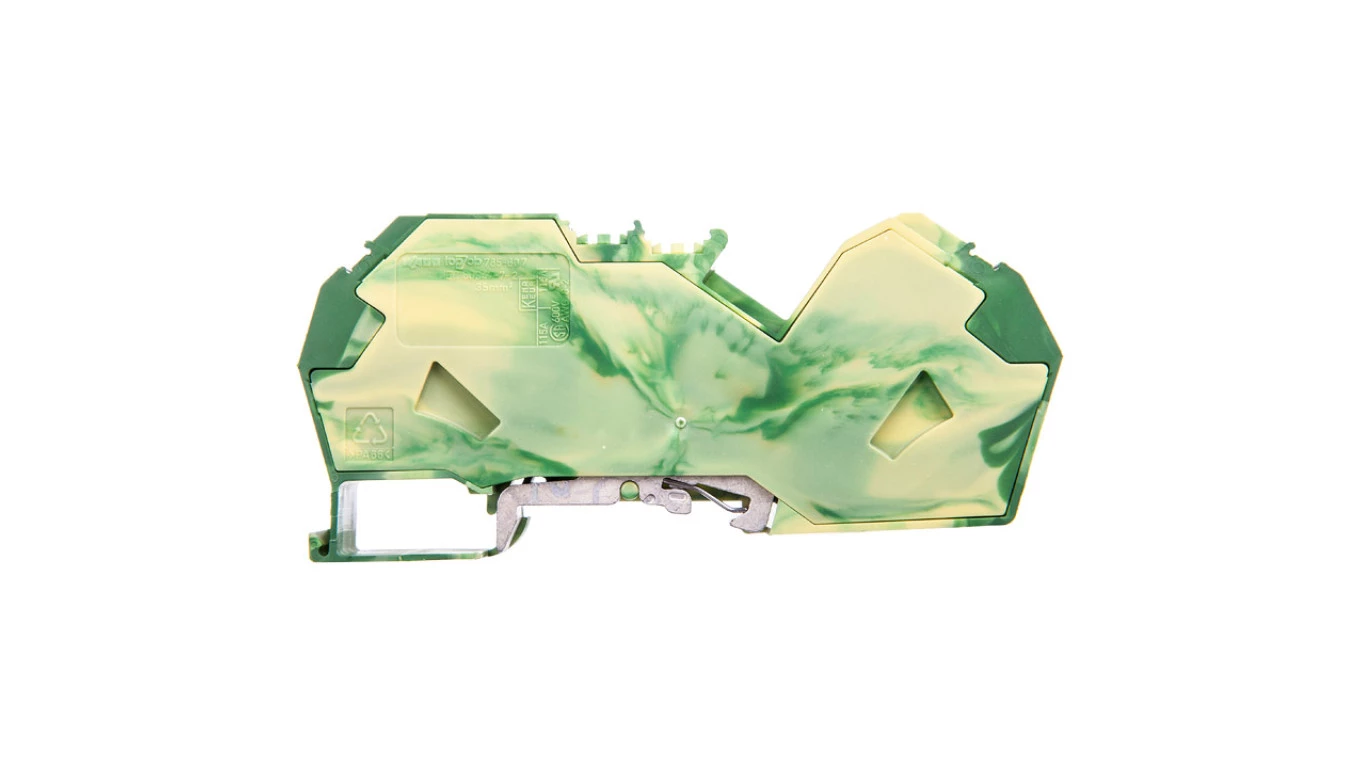 złączka PE 2-przewodowa; 35 mm²; ze zintegrowaną ścianką końcową; opis z boku i na środku; na szynę TS 35 x 15 i 35 x 7,5; CAGE CLAMP®; 35,00 mm²; żółto-zielony