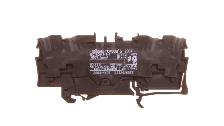 złączka przelotowa 4-przewodowa; 4 mm²; do zastosowań Ex e II; opis z boku i na środku; na szynę TS 35 x 15 i 35 x 7,5; Push-in CAGE CLAMP®; 4,00 mm²; czarny