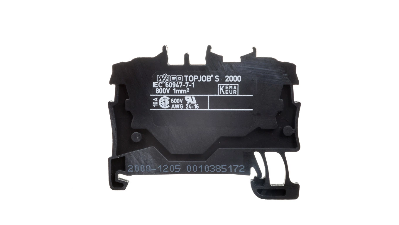 złączka przelotowa 2-przewodowa; 1 mm²; do zastosowań Ex e II; opis z boku i na środku; na szynę TS 35 x 15 i 35 x 7,5; Push-in CAGE CLAMP®; 1,00 mm²; czarny