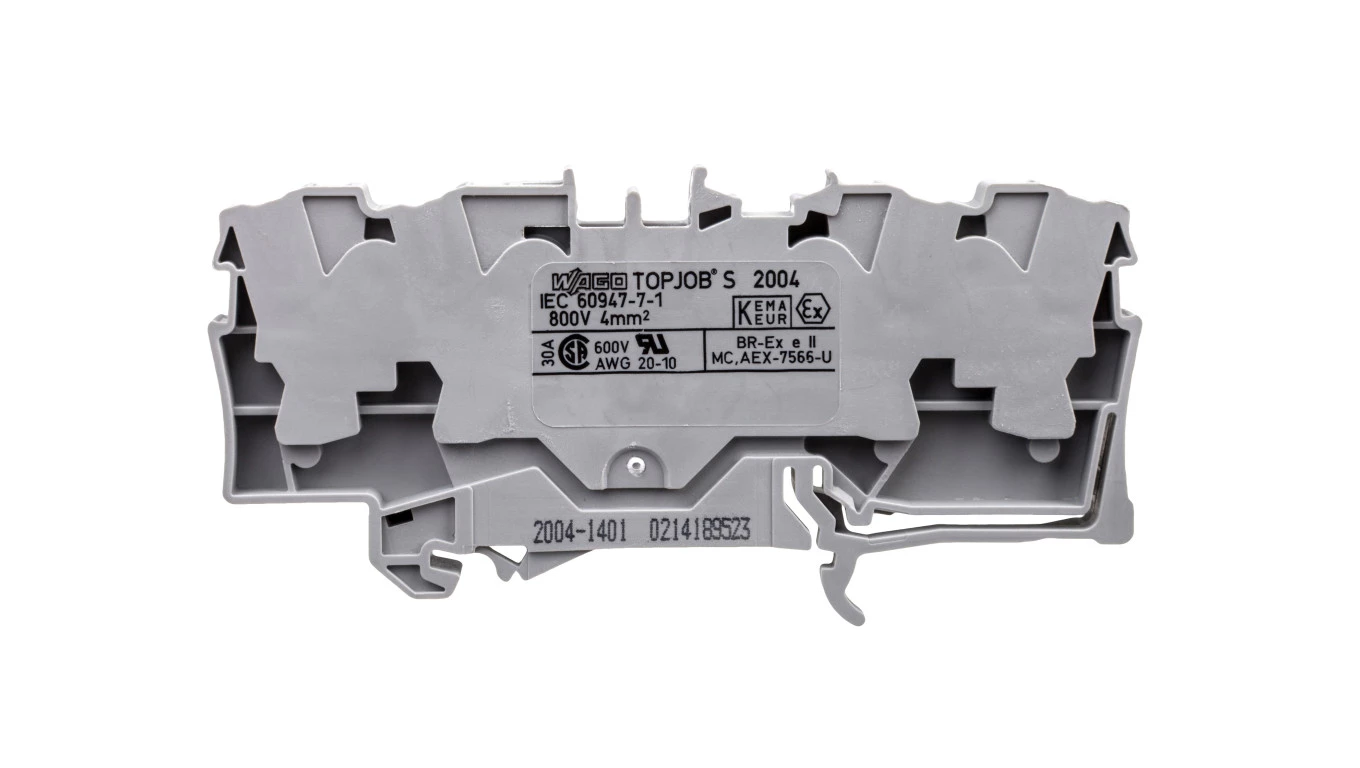 Złączka 2-przewodowa przelotowa 16 mm do zastosowań Ex e II opis z boku i na środku na szynę TS 35 x 15 i 35 x 7,5 Push-in CAGE CLAMP 16,00 mm szara o numerze katalogowym 2016-1201 w kategorii Złączki i zaciski ochronne sprężynowe, Złączki listwowe sprężynowe. Produkt wyprodukowany przez markę WAGO, seria TOPJOB® S.