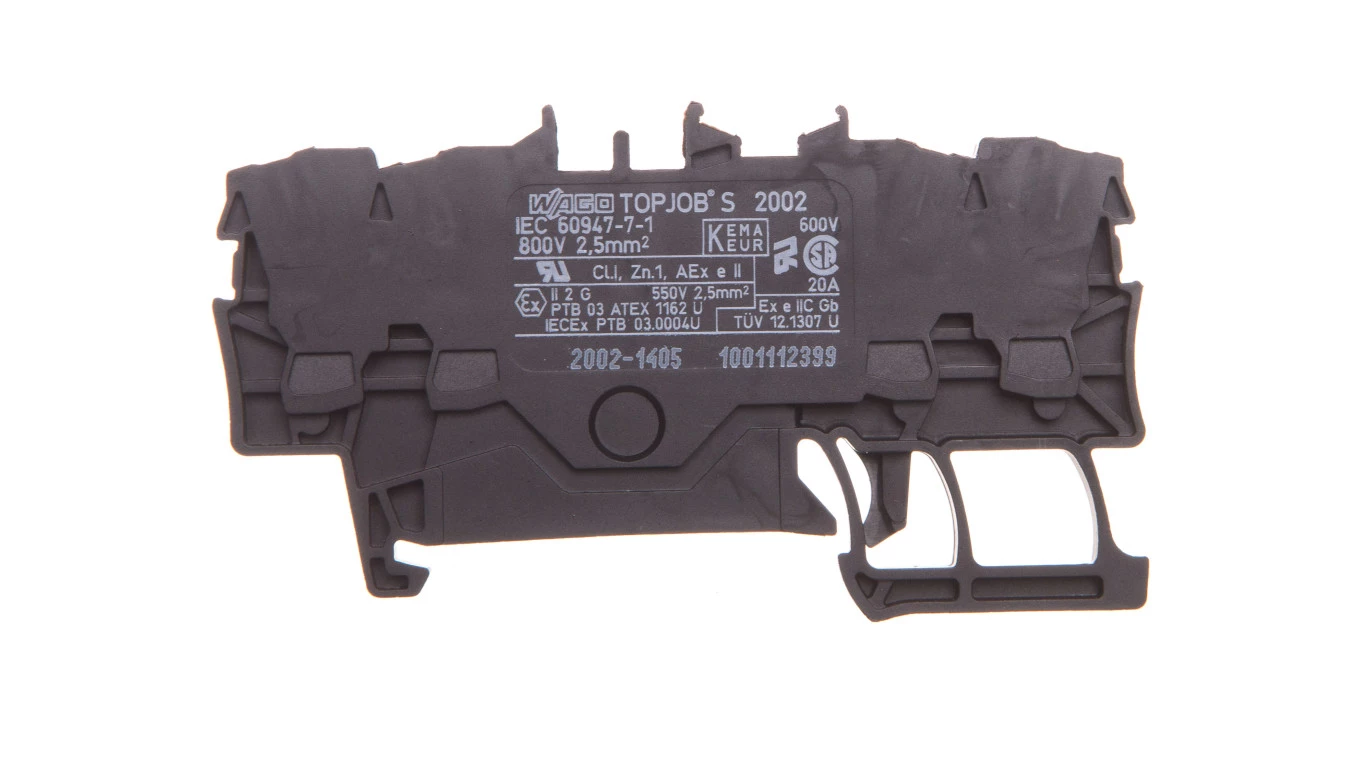 złączka przelotowa 4-przewodowa; 2,5 mm²; do zastosowań Ex e II; opis z boku i na środku; na szynę TS 35 x 15 i 35 x 7,5; Push-in CAGE CLAMP®; 2,50 mm²; czarny