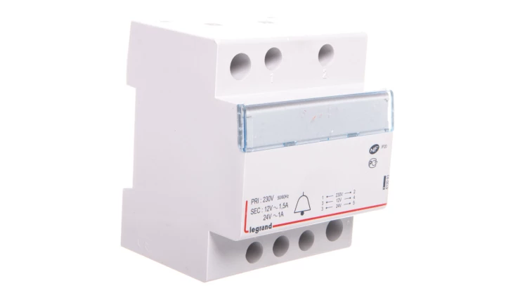 TR324 TRANSFORMATOR DZWONKOWY MODUŁOWY 4M 24VA 1/1.5A 12/24V AC