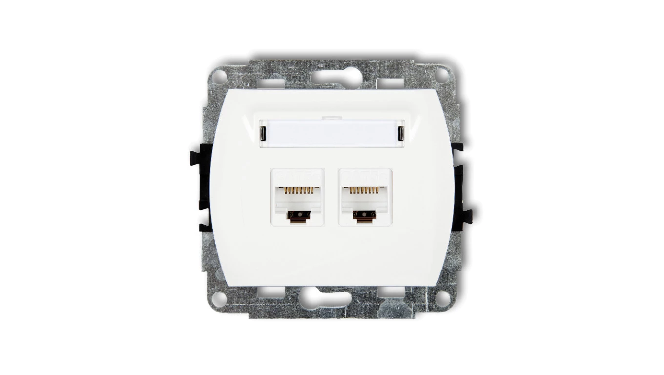Simon 54 Gniazdo komputerowe podwójne 2xRJ45 kat.6 z przesłoną białe D62.01/11