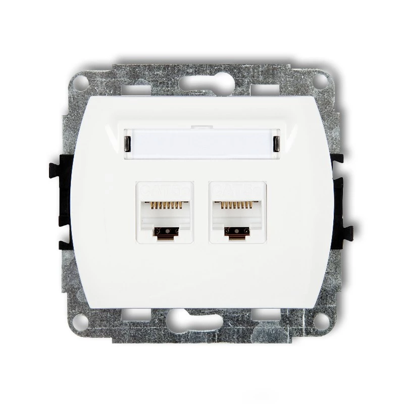Simon 54 Gniazdo komputerowe podwójne 2xRJ45 kat.6 z przesłoną białe D62.01/11