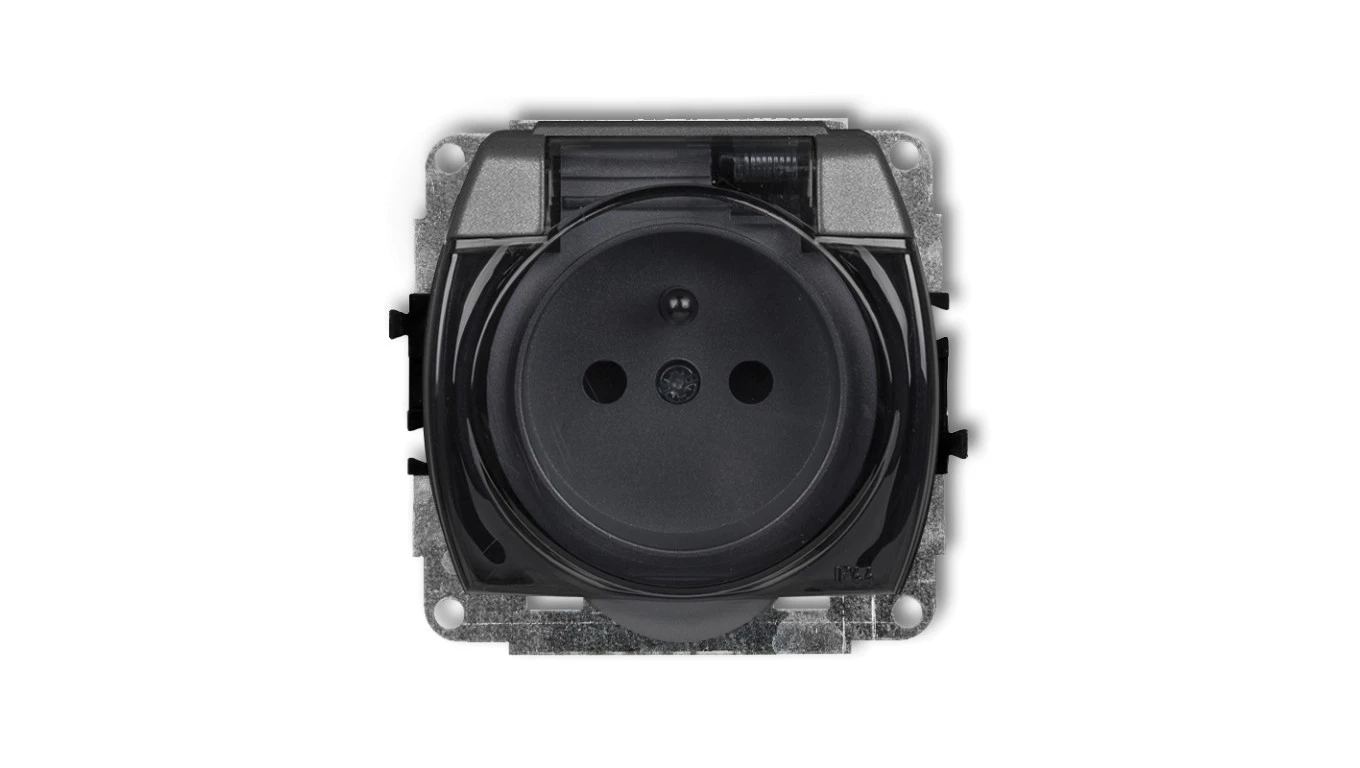 Simon 54 Gniazdo bryzgoszczelne z/u IP44 z klapką transparentną antracyt DGZ1BZ.01/48A