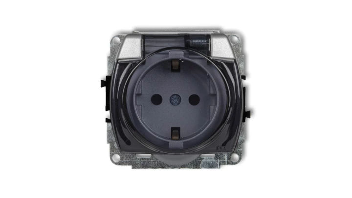 Simon 54 Gniazdo bryzgoszczelne z/u IP44 z klapką transparentną antracyt DGZ1BZ.01/48A