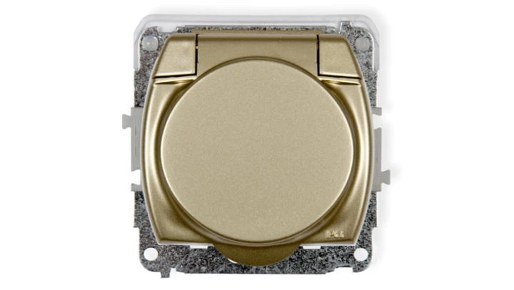 TREND Gniazdo bryzgoszczelne z/u SCHUKO (klapka złota) złoty 6GPB-1sp