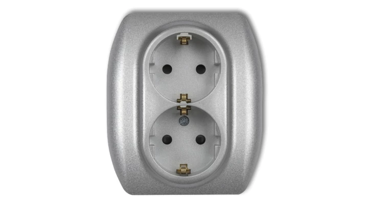 TREND Gniazdo podwójne z/u SCHUKO srebrny metalik 7GP-2sp