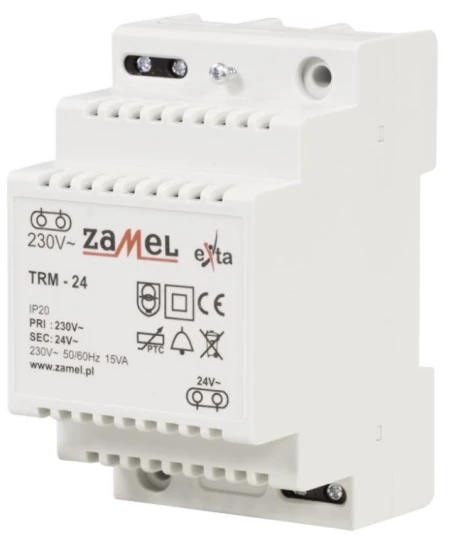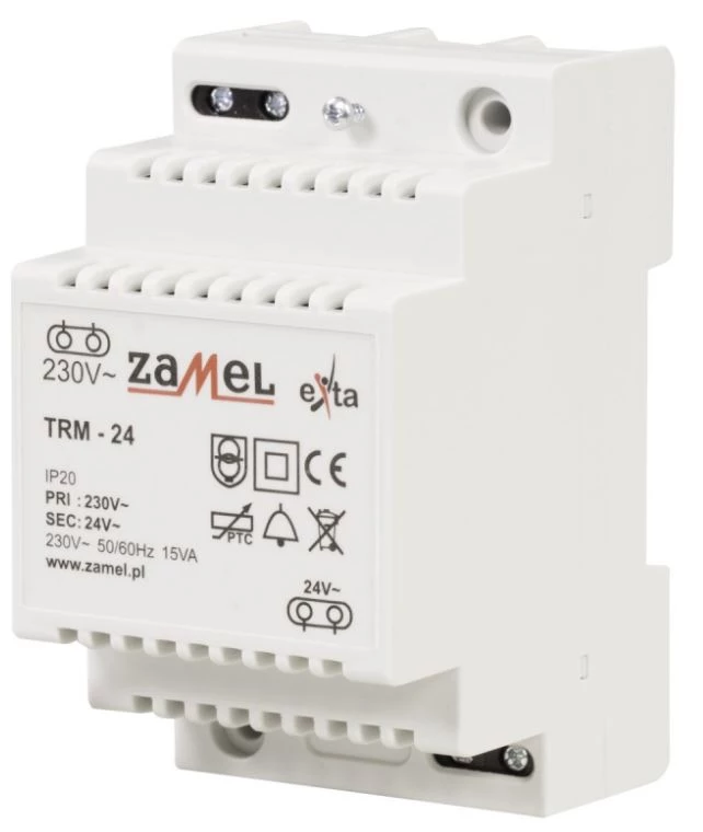 Transformator 230/24V AC 15VA TYP: TRM-24 o numerze katalogowym EXT10000137 w kategorii Zasilacze i transformatory, Aparatura sterująca. Produkt wyprodukowany przez markę ZAMEL, seria EXTA.