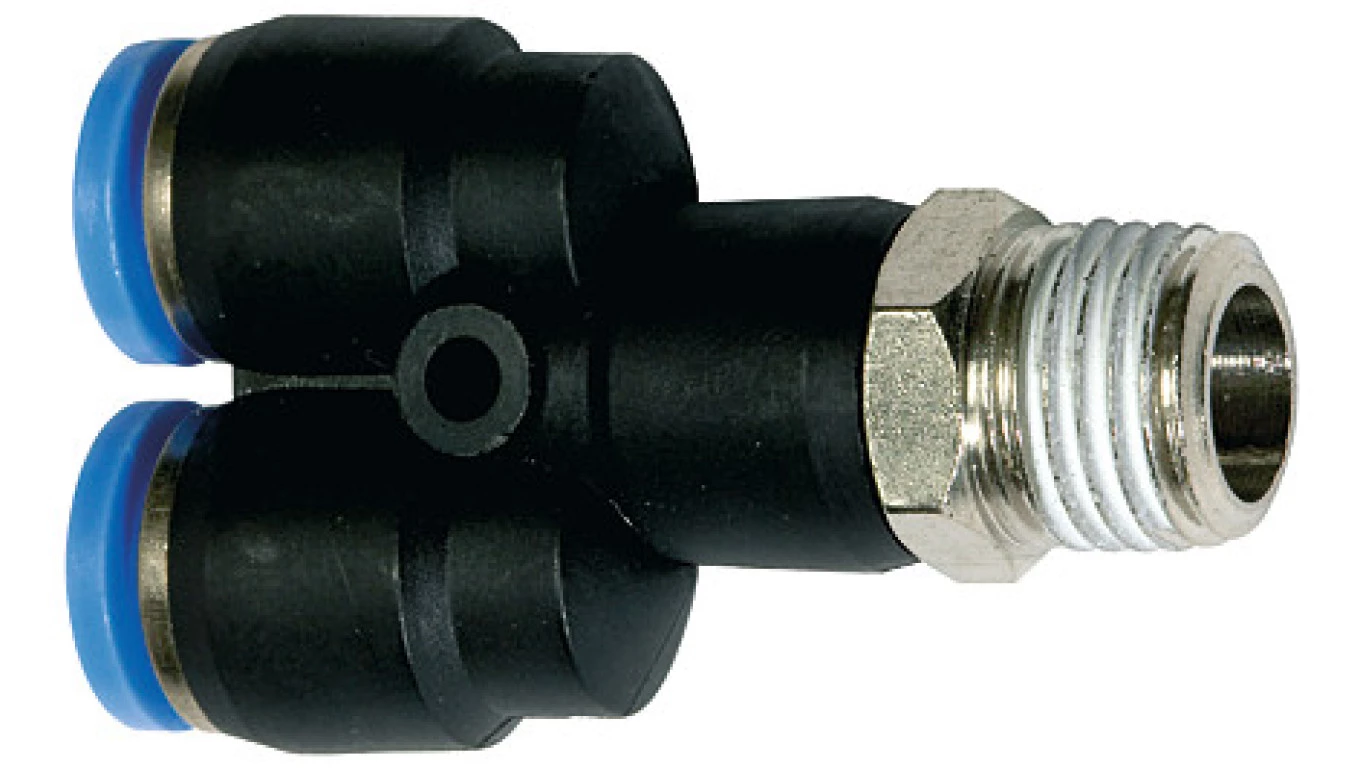 Trójnik pneumatyczny wtykowy typu Y, R 3/8 GZ do węża fi 8 mm, tworzywo sztuczne