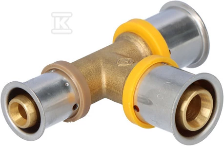 Trójnik redukcyjny mosiężny ultraPRESS - 20/20/16 o numerze katalogowym 1009257217 w kategorii Kształtki KAN-therm ultraPRESS, System KAN-therm ultraPRESS. Produkt wyprodukowany przez markę KAN-therm, seria PRESS FITTINGS.