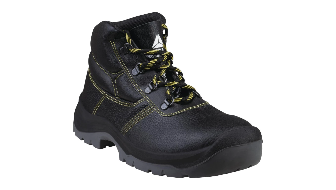 Trzewiki ze skórzanego kruponu barwionego, podeszwa z dwuwarstwowego pu o zróżnicowanych gęstościach czarny 42 o numerze katalogowym JUMP3SPNO42 w kategorii Obuwie robocze, Ochrona nóg. Produkt wyprodukowany przez markę DELTA PLUS.