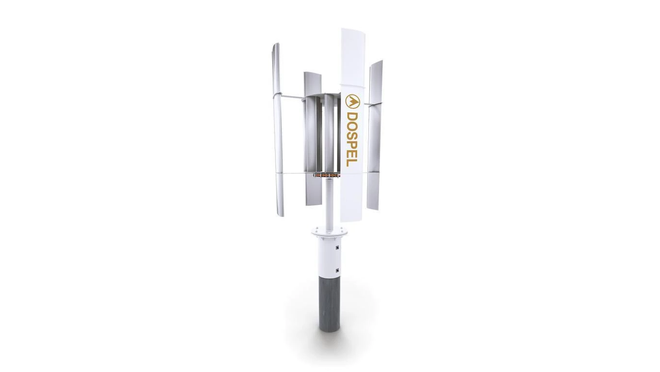 Turbina wiatrowa o mocy 9800W. System pracy On Grid/ Off Grid. Wymiary: średnica 4,3m, wysokość 5,6m. Waga całkowita 970kg