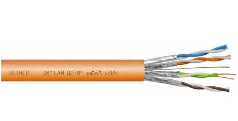 Przewód BiTLAN U/FTP 4x2x23 AWG cat. 6A 500MHz LSOH o numerze katalogowym TI0079 w kategorii Kable do sieci informatycznych, Kable telekomunikacyjne. Produkt wyprodukowany przez markę BITNER, seria U/FTP.